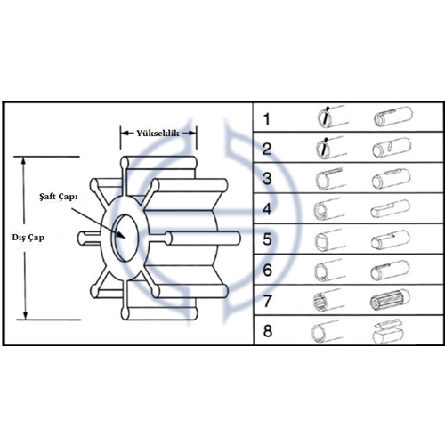 İmpel tulumba lastikleri belirli ölçülerde imal edilmektedir...